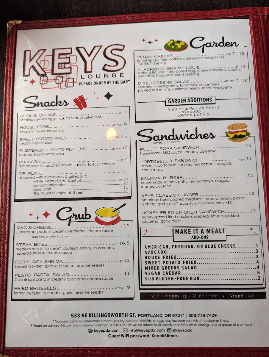 Welcome to Keys Lounge, a hidden gem located at 533 NE Killingsworth St, Portland, OR. As a pivotal part of the vibrant Portland dining scene, Keys Lounge promises an enticing blend of delectable food, exquisite drinks, and a lively atmosphere that invites you to unwind.
